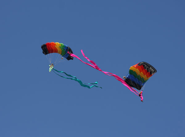 Angkatan Udara Tentara Pembebasan Rakyat Tiongkok hari ini (15/11) mengadakan pertunjukan terjun payung untuk merayakan genap 60 tahun Angkatan Udara TPR. Dalam gambar tampak Barisan Terjun Payong "1 Agustus" sedang mengadakan demonstrasi terjun payung.