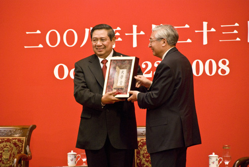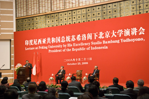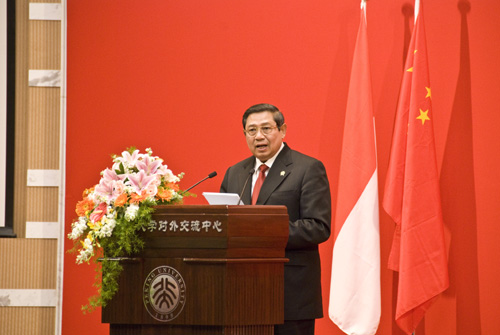 Usai pertemuan bilateral dengan Presiden Tiongkok Hu Jintao tadi pagi, Presiden Susilo Bambang Yudhoyono siang hari ini (23/10) menyampaikan pidato berjudul "Kemiteraan Strategis Indonesia-Tiongkok, Pada Lingkup Regional dan Internasional" di Universitas Peking.