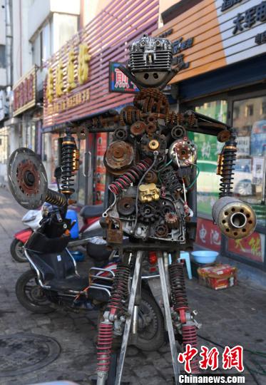 Sebuah robot dipajang di pinggiran jalan kota Jilin provinsi Jilin Tiongkok. Menurut kabar, robot ini dibuat selama 4 hari oleh seorang tukang reparasi menggunakan ratusan spare part mobil bekas yang sudah tak terpakai.